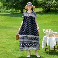 2025夏季新款高級洋氣棉綢連衣裙 寬鬆休閒 舒適百搭 久穿不悶汗 久洗不變形 多色可選